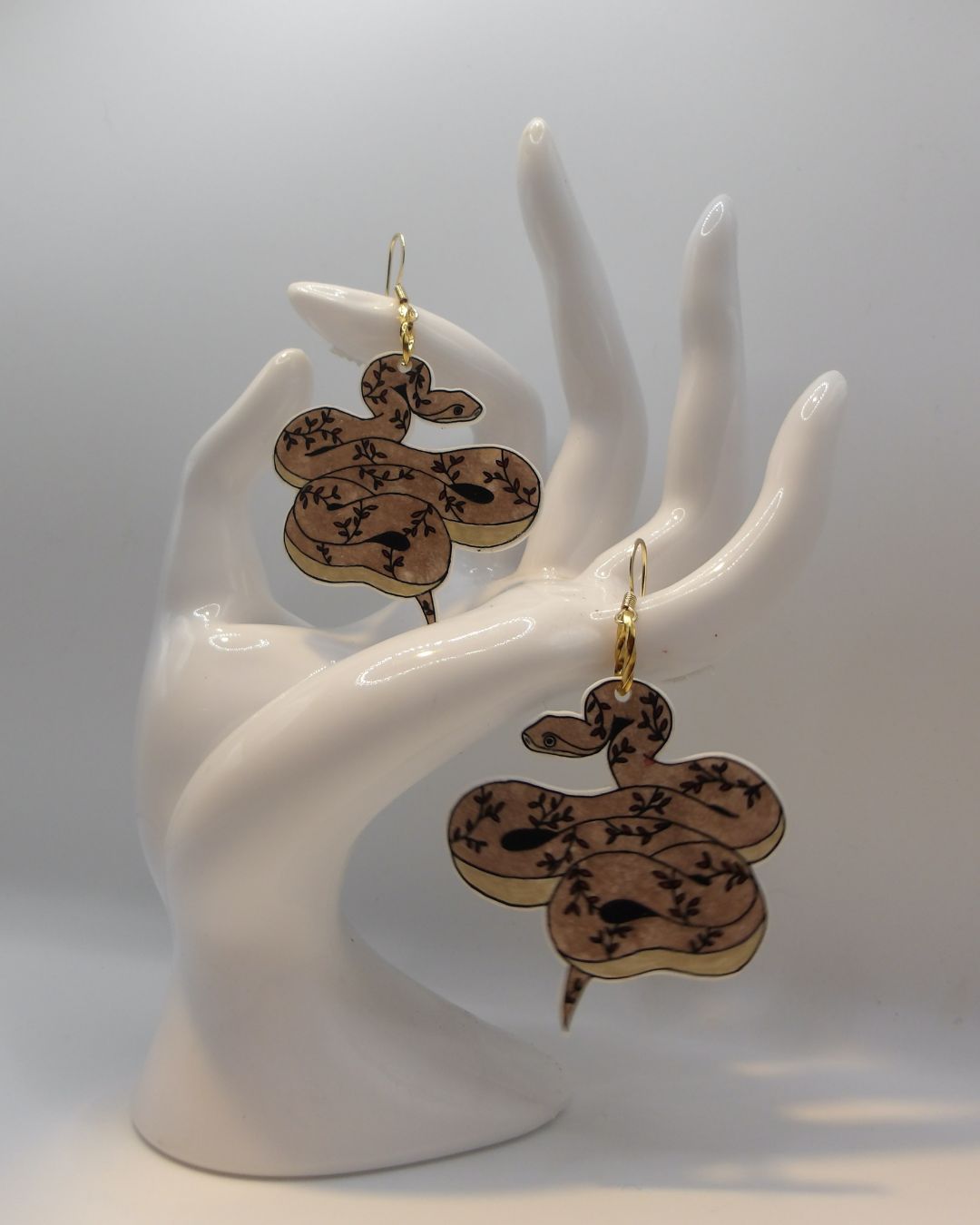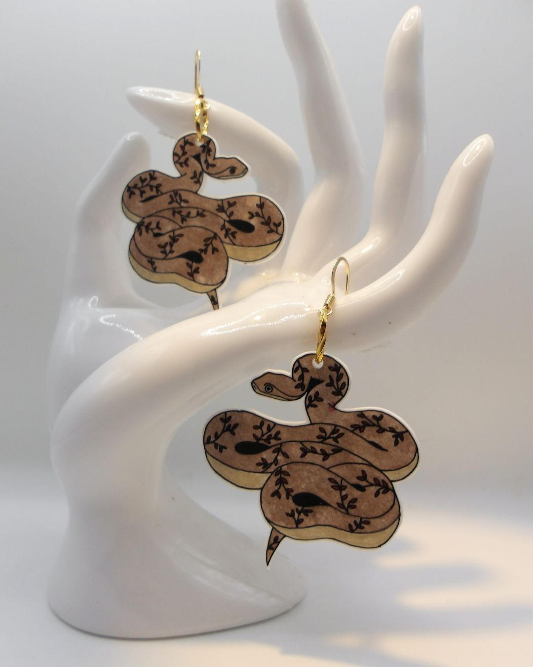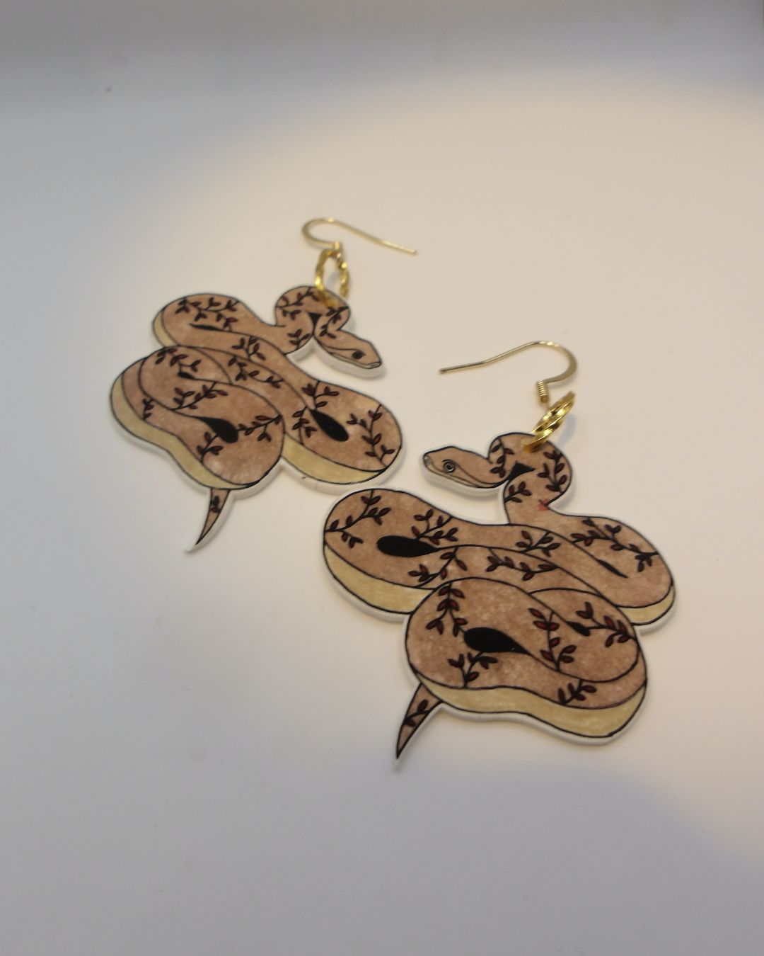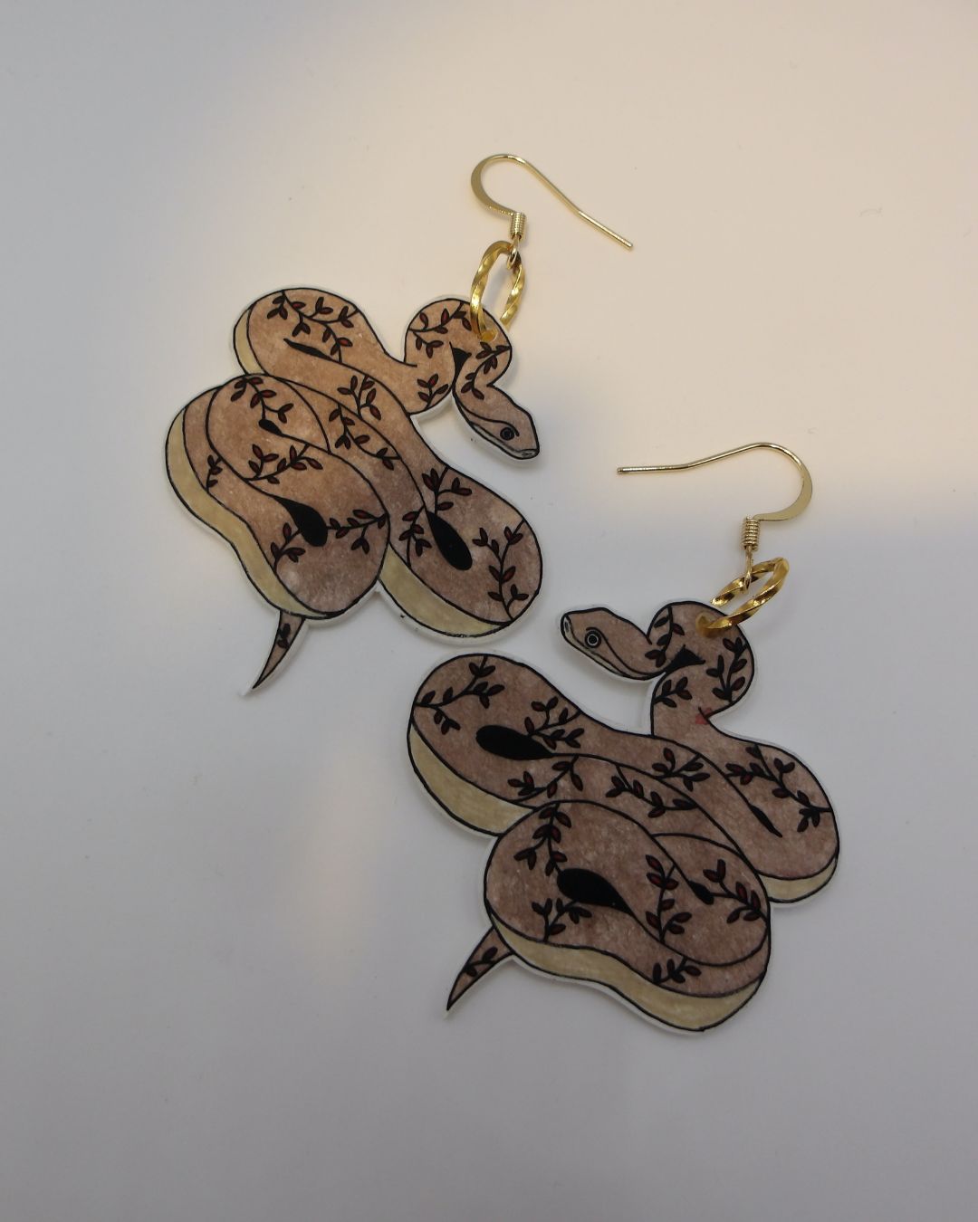 Handgemaakte oorbellen goudkleurig - slang