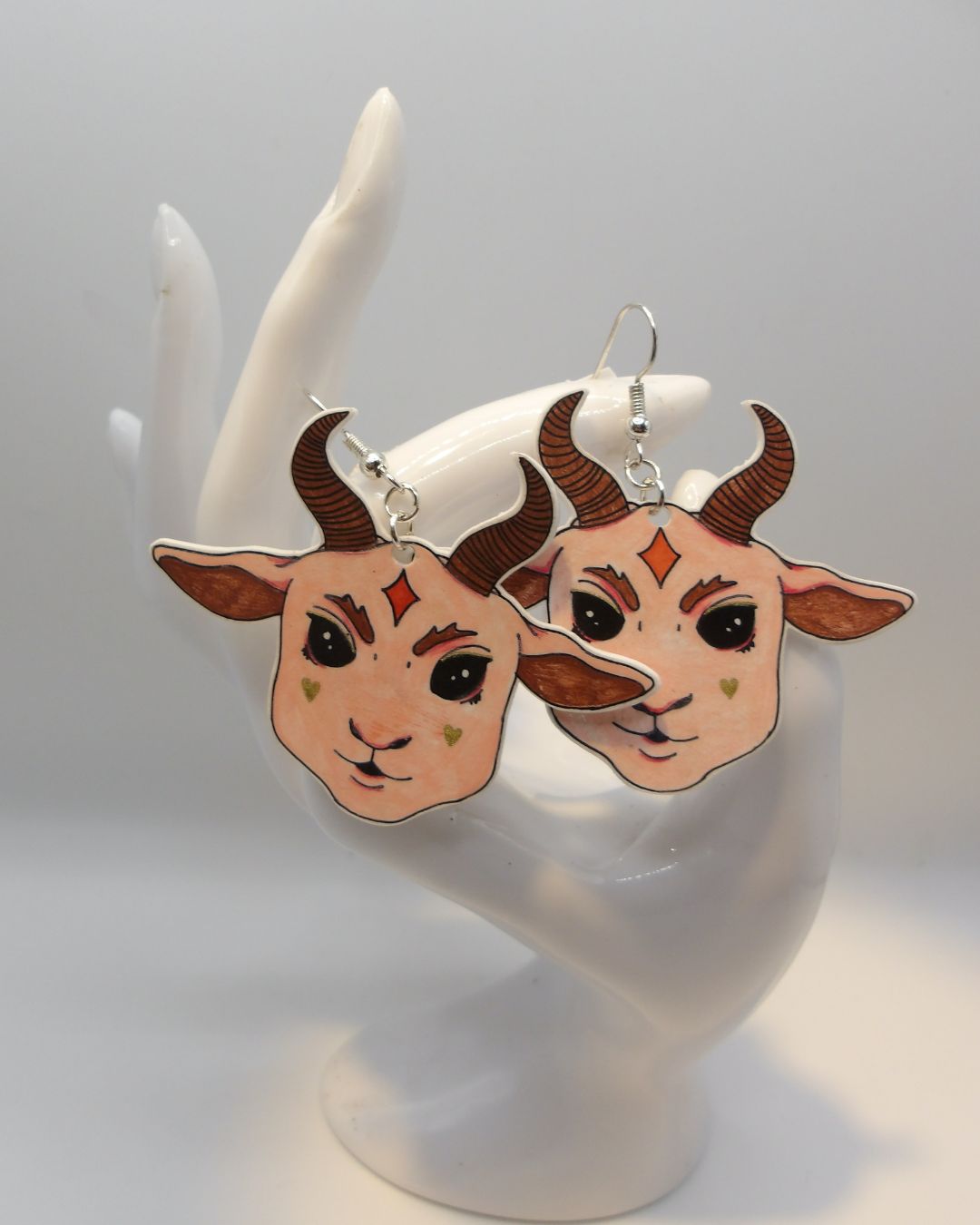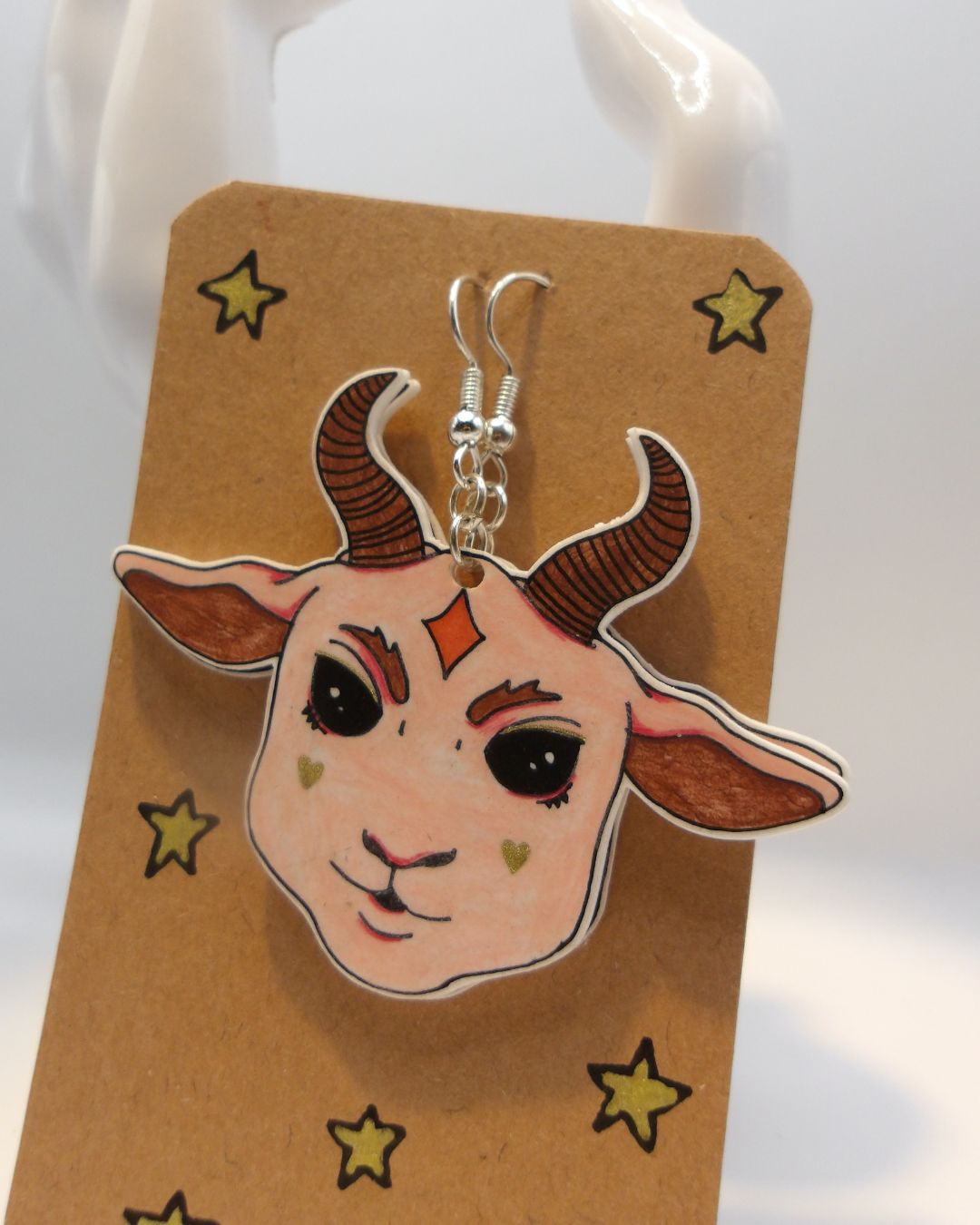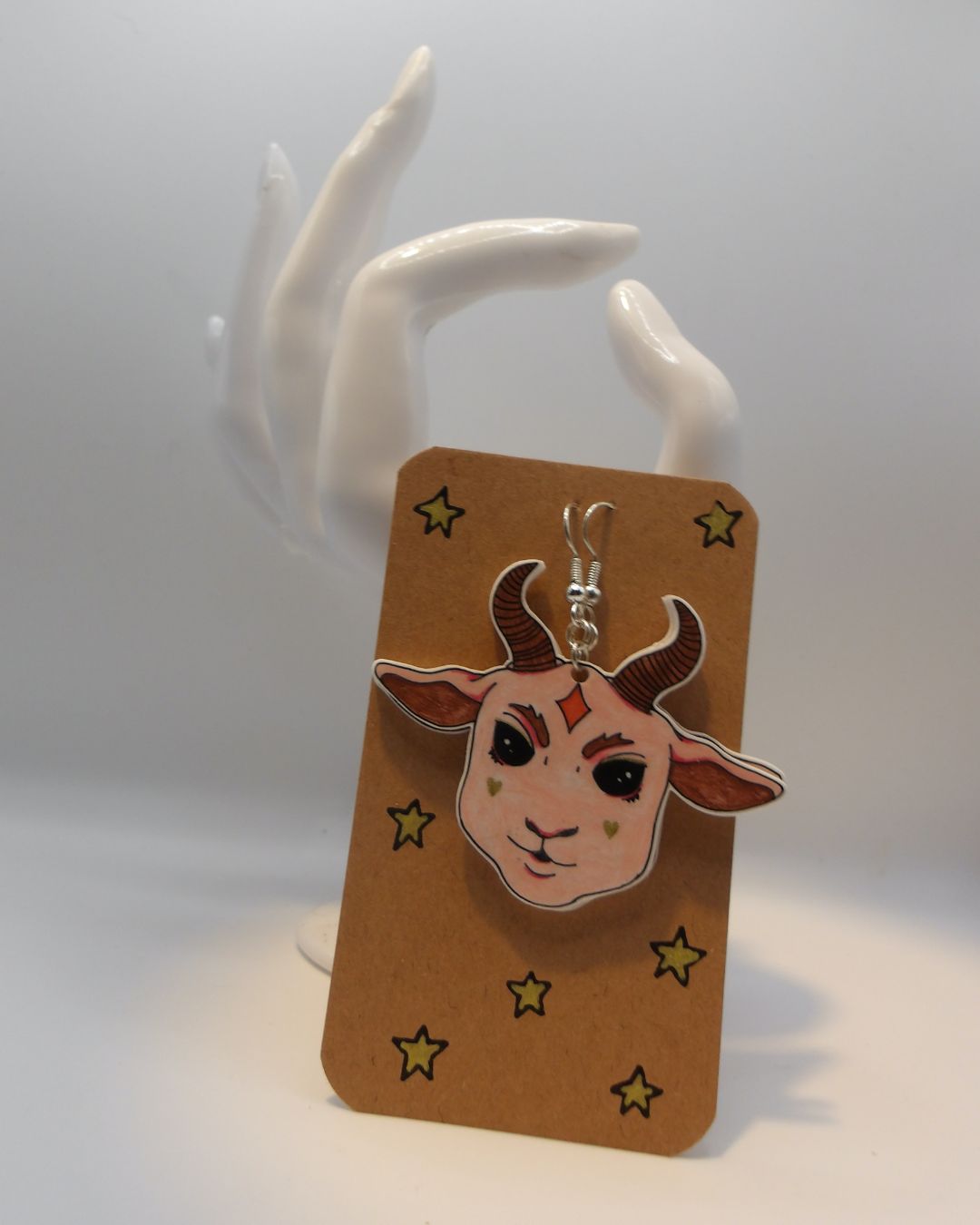 Handgemaakte oorbellen zilverkleurig - geit duiveltje roze