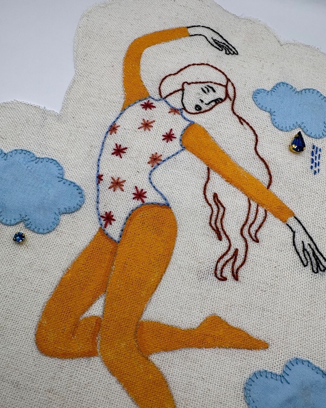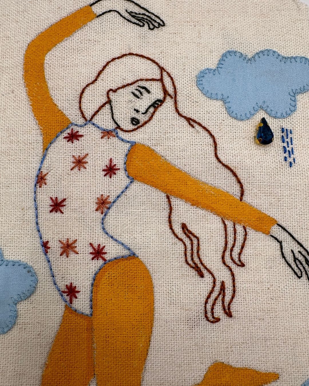 • ✂︎  Geschilderd op linnen met geborduurde details.